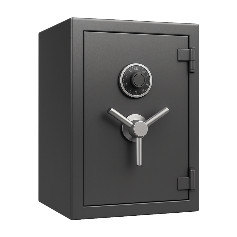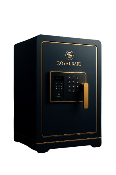 "Heavy-duty office safe with biometric lock, ideal for protecting business valuables, sensitive files, and confidential paperwork."
